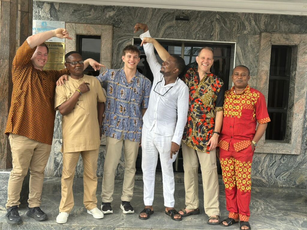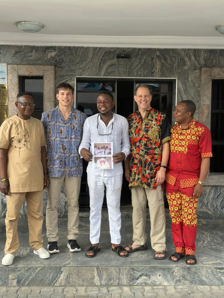 ​The group celebrated with beaming smiles and rousing cheers of "Gbooooza!" for Ebony Hospital, reflecting the festive spirit of the occasion. The family presented us with a token, and Caleb held up a framed photo, a memento symbolizing the precious moment of his birth that brought everyone together again.